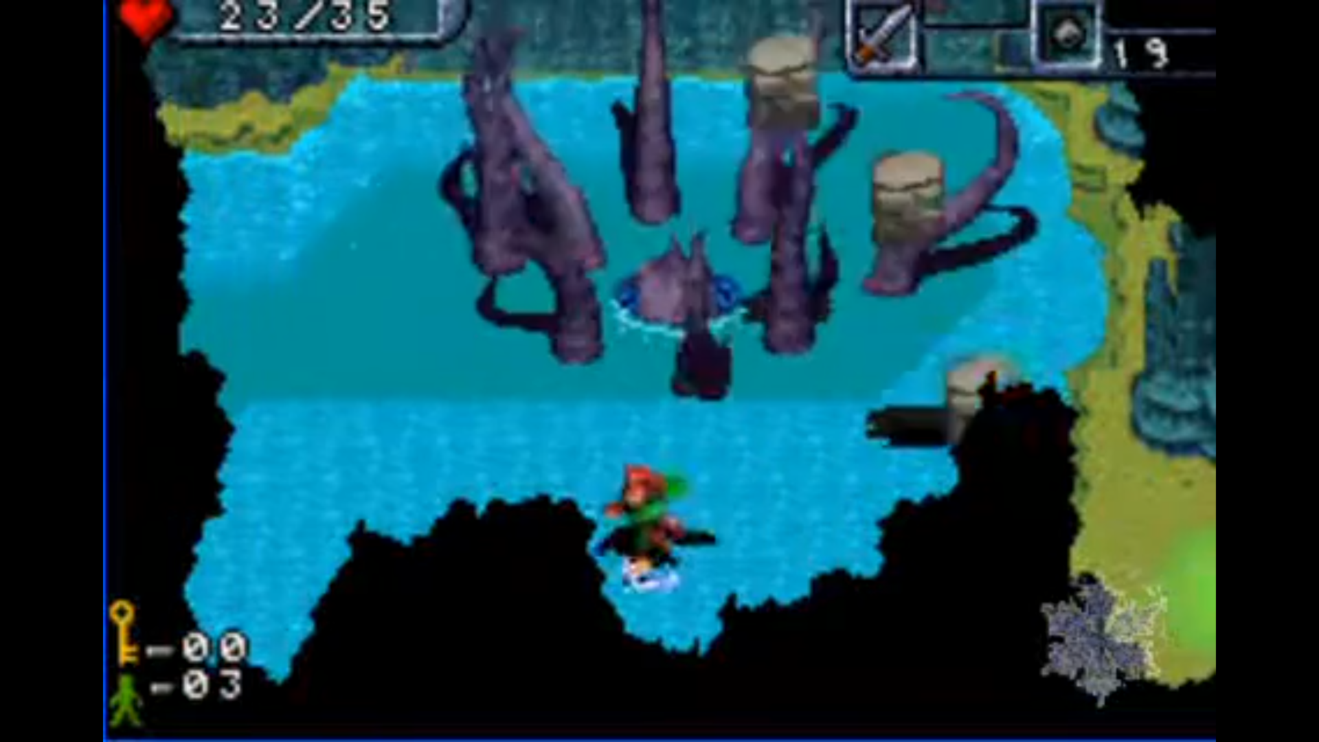 Так и что же этот геймплей из себя представляет? Ну... вообще-то The Legend of Zelda без открытого мира. Прямо вот очень похоже на двухмерные части приключений Линка, особенно A Link to the Past. Исследуем запутанные уровни, выполняем квесты, решаем головоломки, ищем скрытые проходы и ключи от дверей и сундуков. Ну и, конечно, сражаемся: есть оружие ближнего боя, метательное и взрывное (фейерверки типа как были у Гэндальфа), а также различные враги, в схватках с которыми надо соблюдать тайминги. Боссы тоже есть, но какого-то особенного подхода обычно не требуют: достаточно спамить самое мощное оружие на них и хилки на себя. При возвращении на уже зачищенный экран враги кроме боссов возрождаются, позволяя фармить расходники (хилки и метательное оружие).